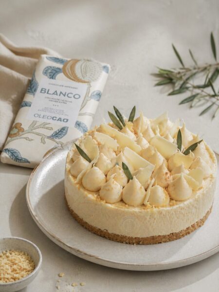 Tarta de chocolate blanco con AOVE Oleocao