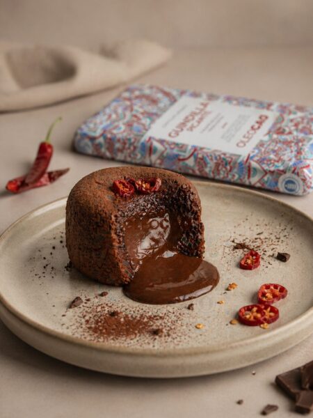 Coulant de chocolate con guindilla y AOVE (Oleocao)