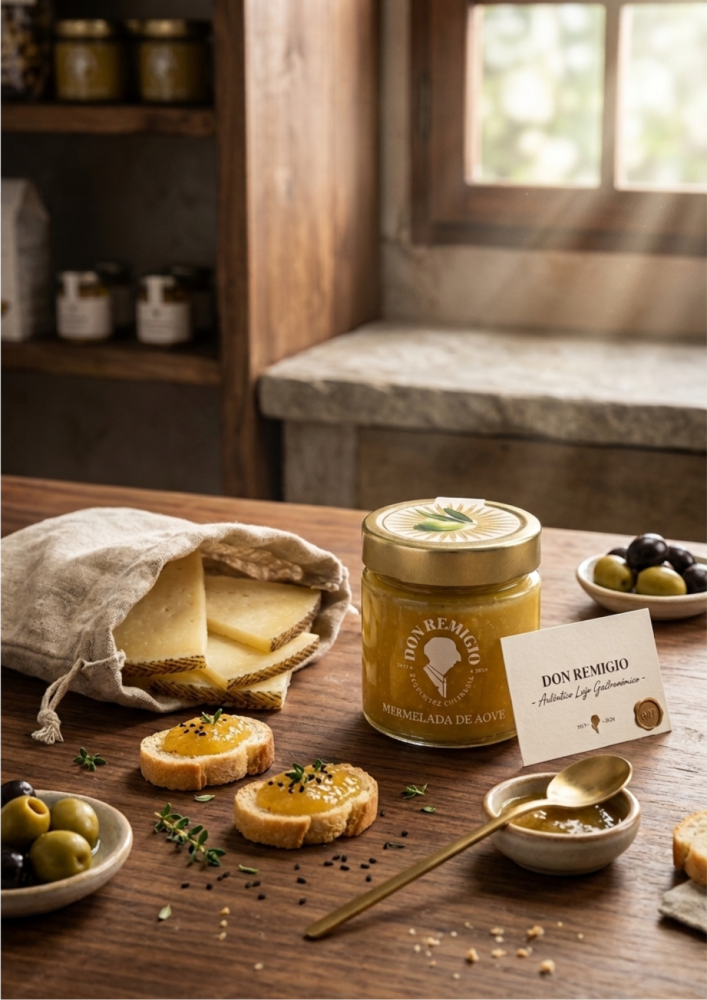 La Mermelada de AOVE Don Remigio es una creación gourmet única que eleva el aceite de oliva virgen extra a una nueva dimensión culinaria. Elaborada con un 78% de AOVE, combina la intensidad del fruto con un delicado equilibrio dulce, dando lugar a una textura sedosa y un sabor elegante.